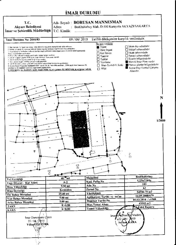 - SAKARYA – AKYAZI Bediltahirbey 55 Dönüm alanda sanayi imar planı geliştirme ve imar uygulamaları